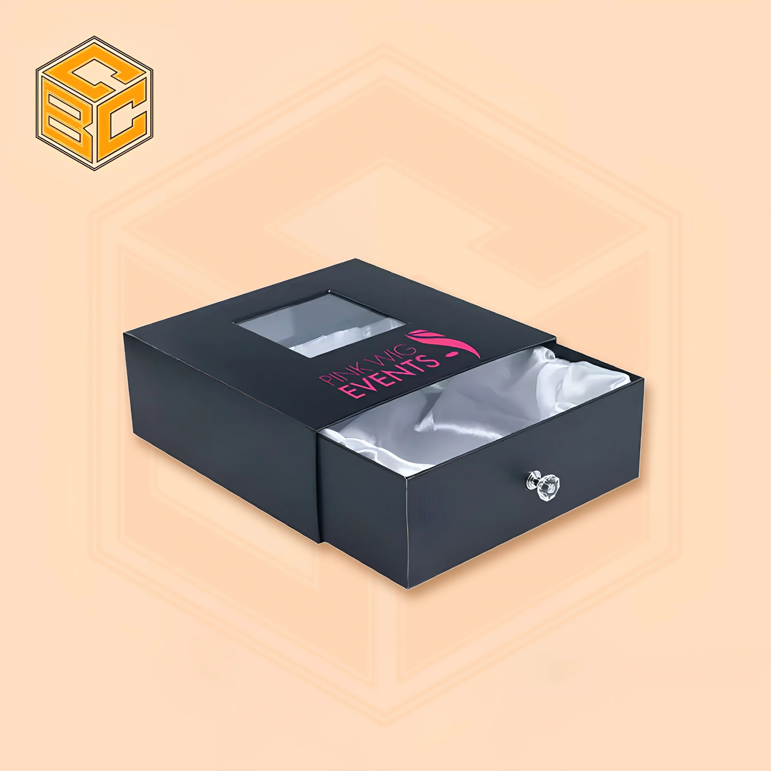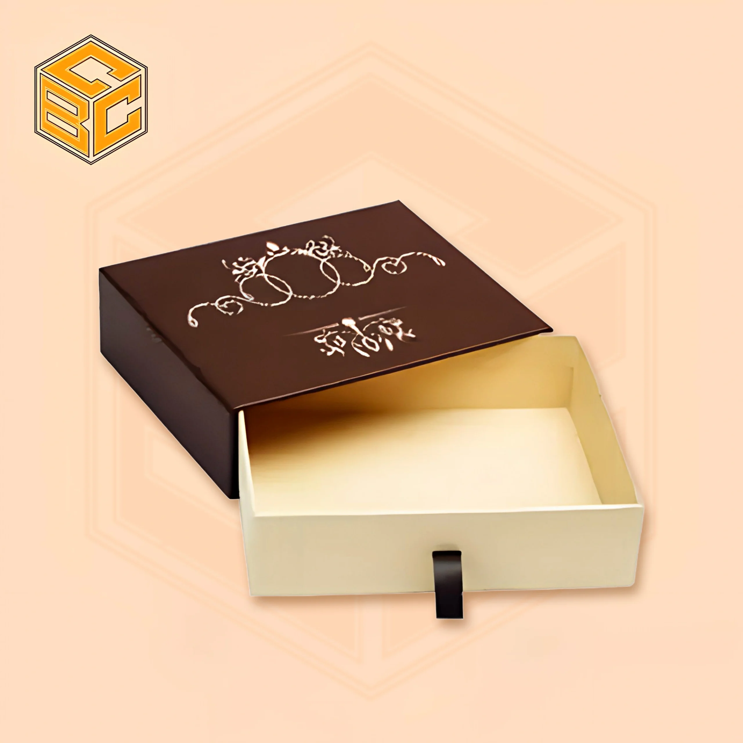 In this design, the tray slides out like a drawer, creating a premium unboxing experience.